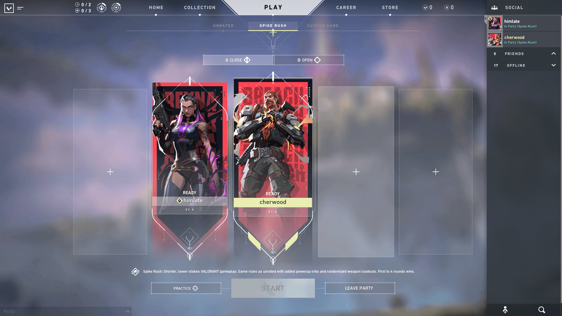 Lobby-centric with carousel selection - The player lobby takes a center stage, with game modes accessible through small carousels above or below. Used by Valorant. Prioritizes social presence and party formation over mode browsing.