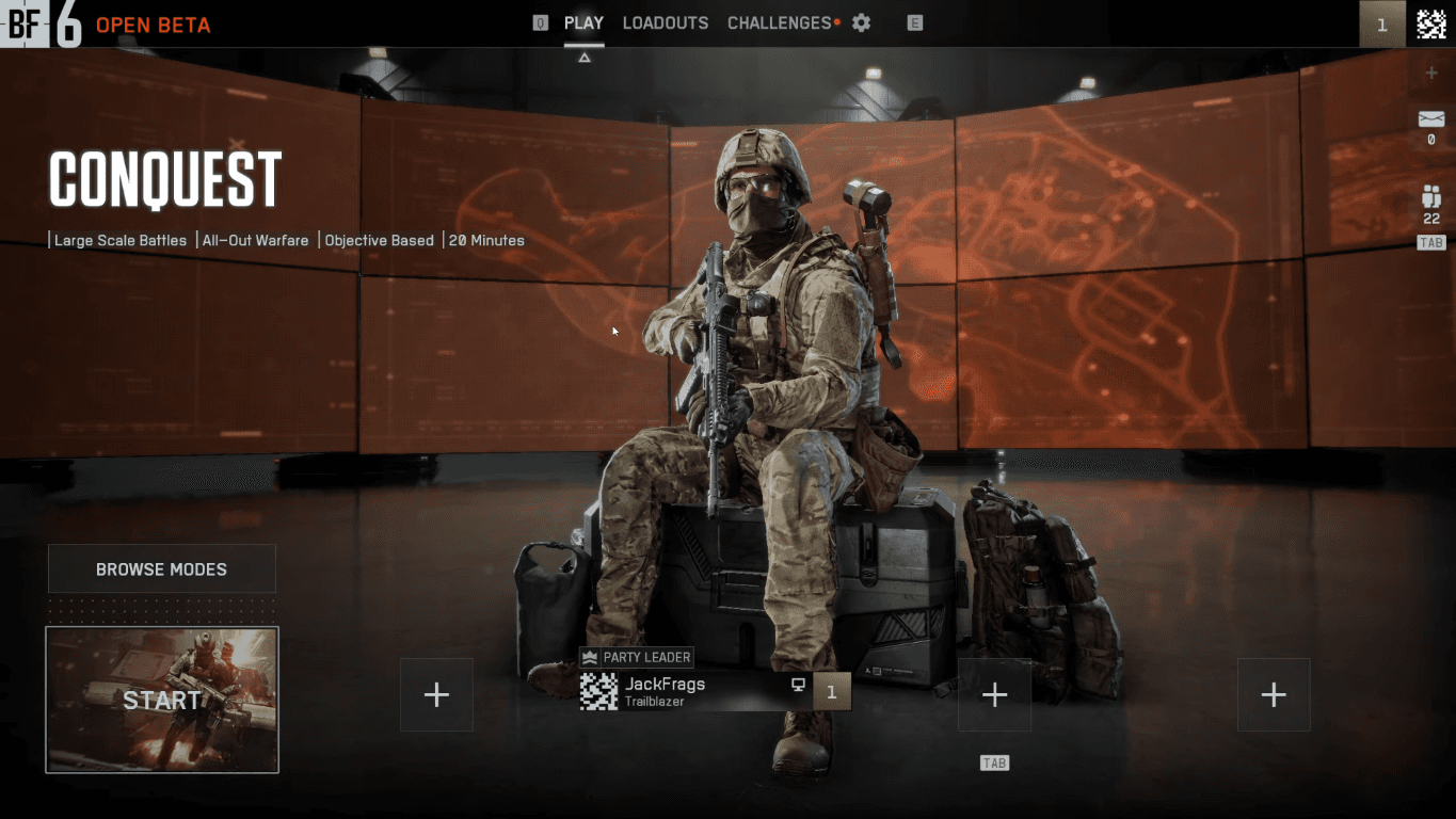 Game mode and Play buttons (Battlefield 2042)