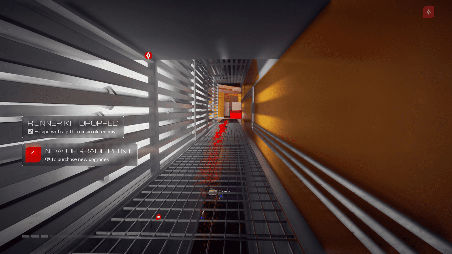 Since both Mirror's Edge games inspired the core gameplay, Catalyst was an obvious starting point. Its HUD hides most elements until needed, mixing diegetic menus, spatial indicators, and meta UI like damage feedback. I was particularly interested in Catalyst's direction indicator and originally wanted to expand on it with diegetic-like navigation arrows similar to how Google Maps implements them in AR view.